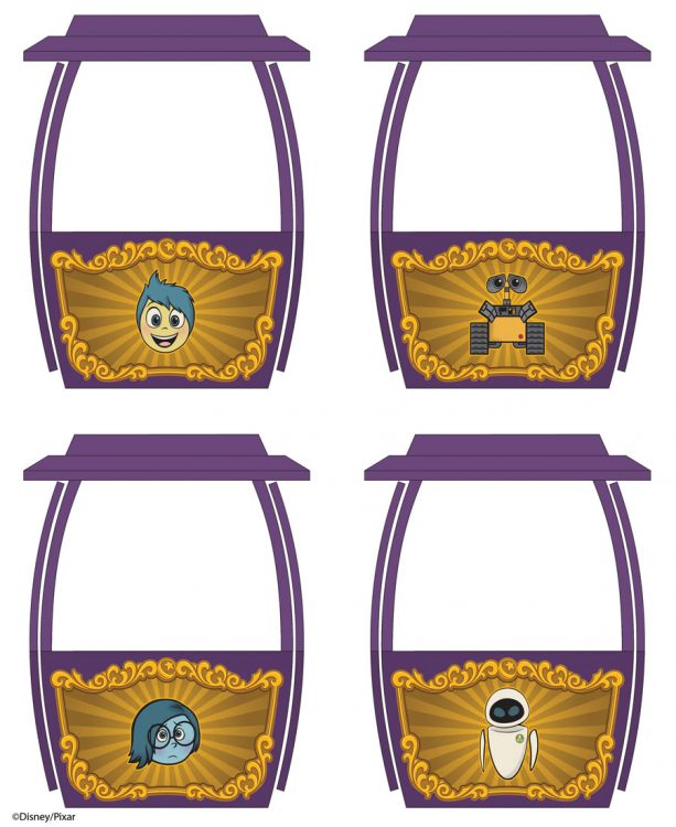 Los diseños de las góndolas de Mickey’s Fun Wheel en Pixar Pier.