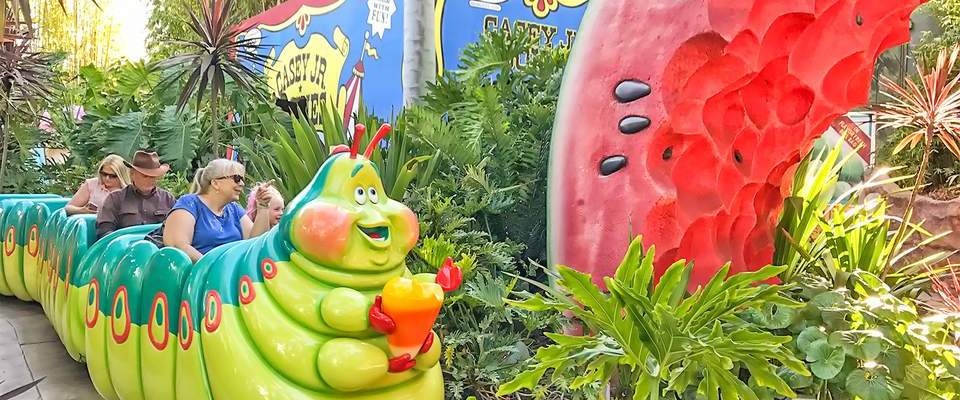 Una de las atracciones más queridas de la ahora extinta tierra de Bug’s Land en Disney’s California Adventure, fue Heimlich’s Chew-Chew Train. A simple vista pareciera un viaje en un tren, pero era una experiencia divertida; había momentos donde pasabas por una sandía y llegaba el olor de una sandía fresca y deliciosa.