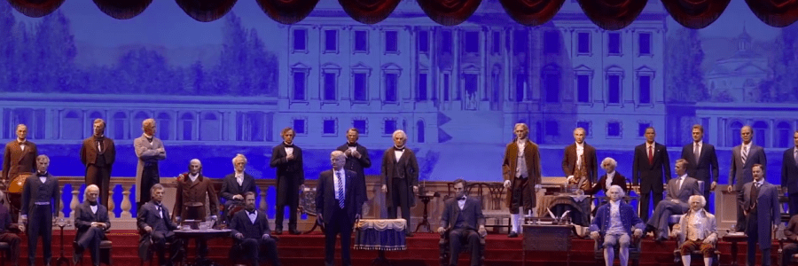 Así es, el día de ayer el audio animatronic del actual presidente de los Estados Unidos, ha hecho su debut. Si bien no es del agrado de muchos, debemos de aplaudir la tradición de Disney por mantener su historia viva. Les compartimos un video del debut: